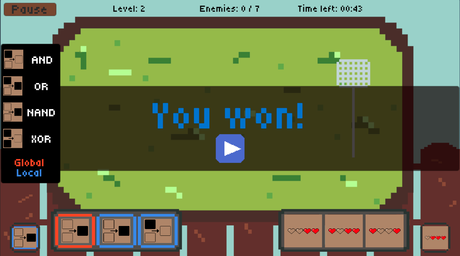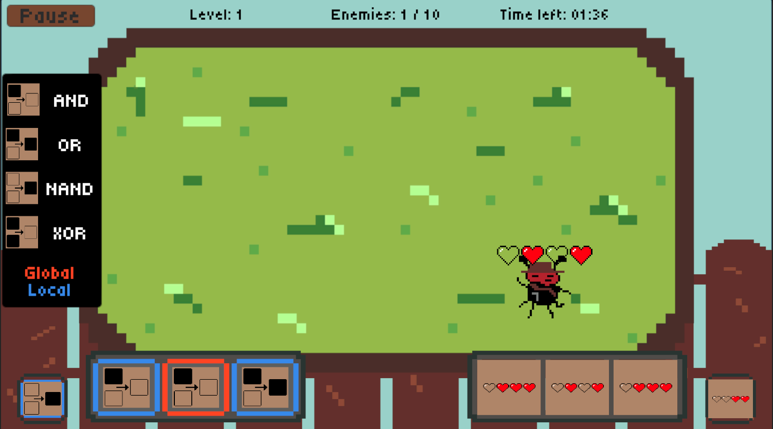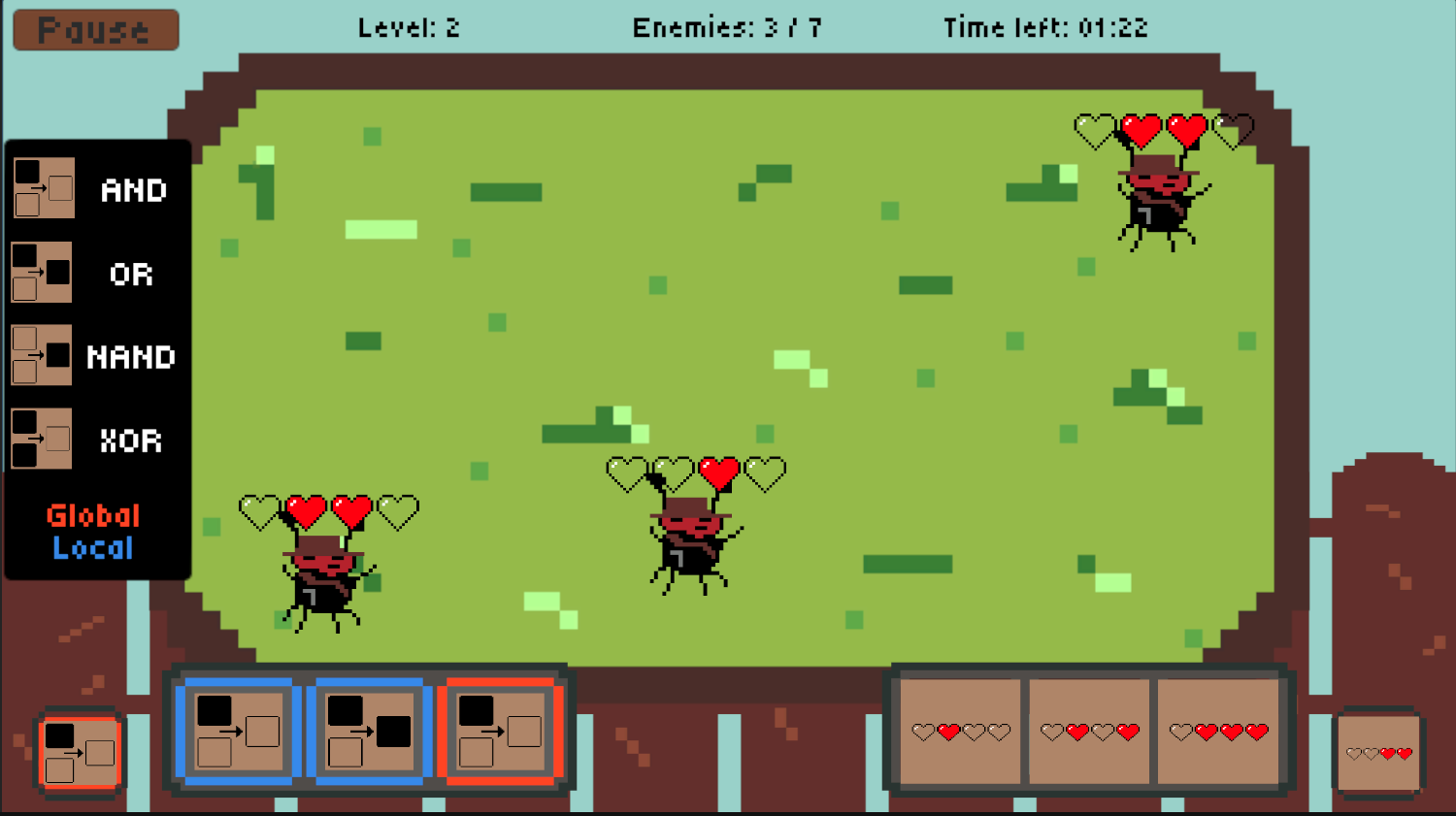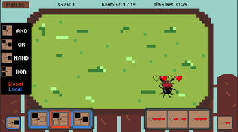 Jednoduše v dolní části obrazovky zvolíš jakou funkci a jaké číslo chceš na mravenečky použít a už jen čekáš než se jich zbavíš. Jednotlivé funkce jsou znázorněné graficky a reprezentují bitové operace. Nic víc na tom není, ale náročná je teda dost!